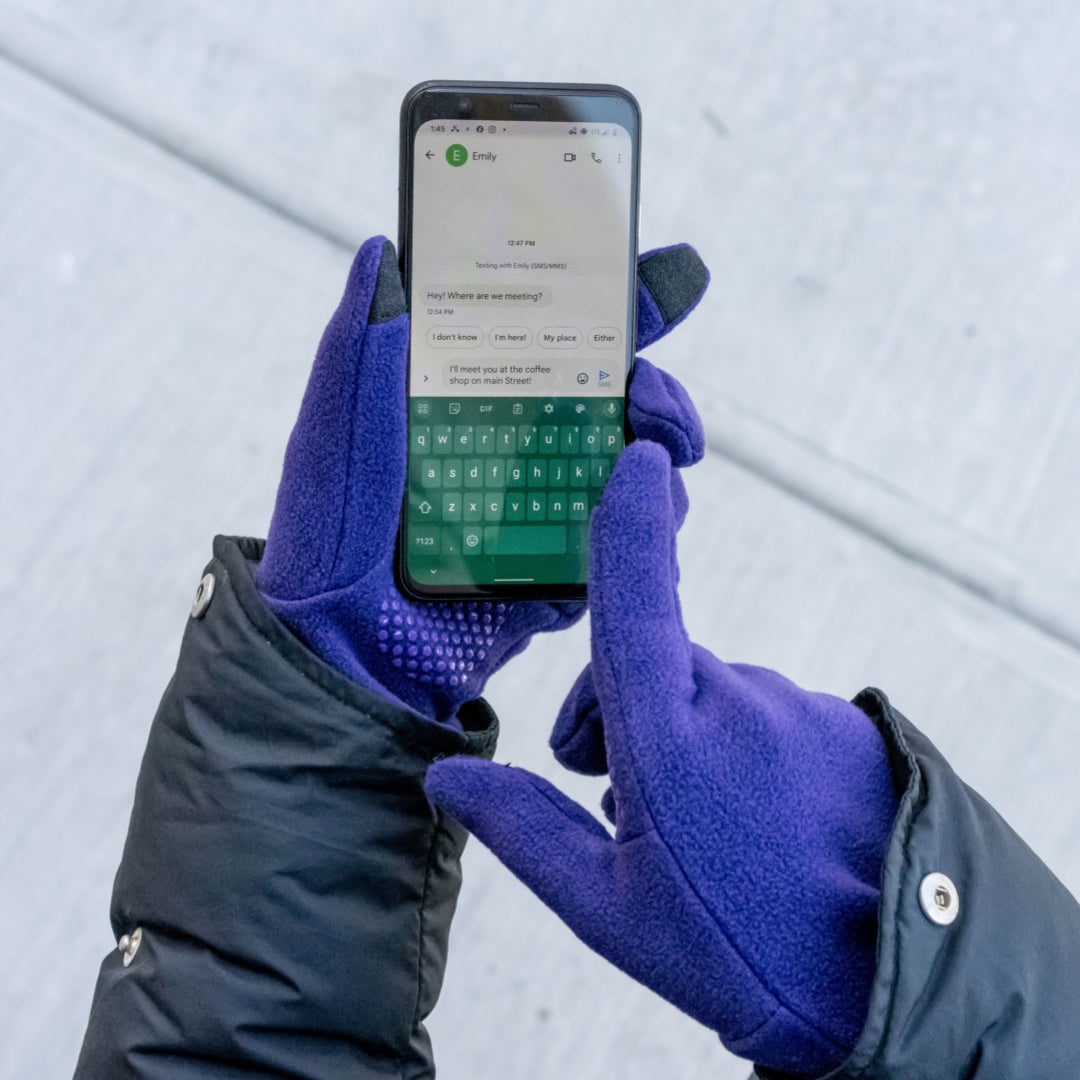 Cozy, streamlined gloves with touchscreen‑ready fingertips so you can text and scroll without exposing your hands to the cold.