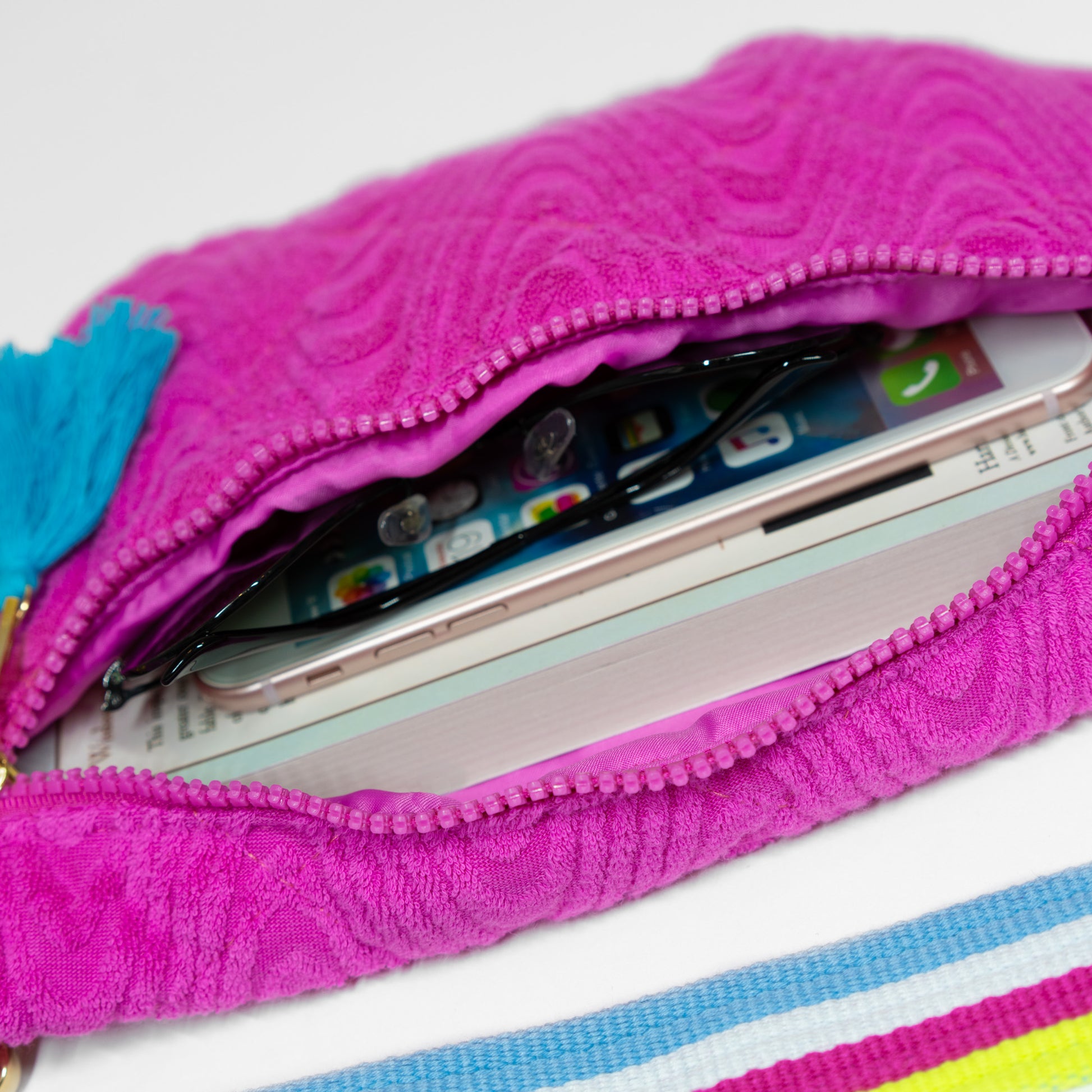 Terrycloth Cross Body Bag With Guitar Strap - Orchid